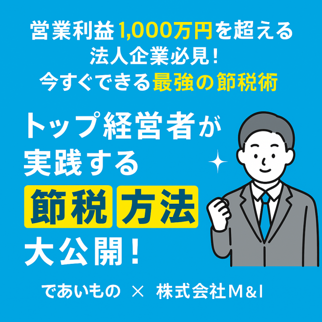 「であいもの」では、中小企業や医療法人、資産管理法人などに向けて、税制優遇制度を活用した節税スキームをご提案しています。